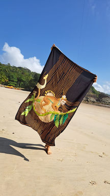 O trabalho com lenços e cangas surge como uma forma de vestir a arte. É uma nova maneira de articular meus três campos de pesquisa - o corpo, a natureza e a arte - permitindo que essas imagens deixem o espaço expositivo e passem a habitar o cotidiano.